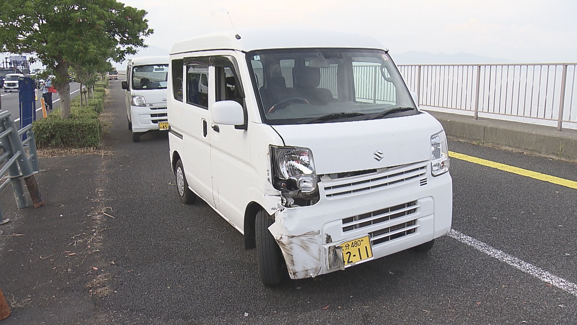 衝突後、軽トラックは歩道脇の柵をなぎ倒し海側に転落していて、車内にいた男性1人が病院に搬送されましたが命に別条はないということです。