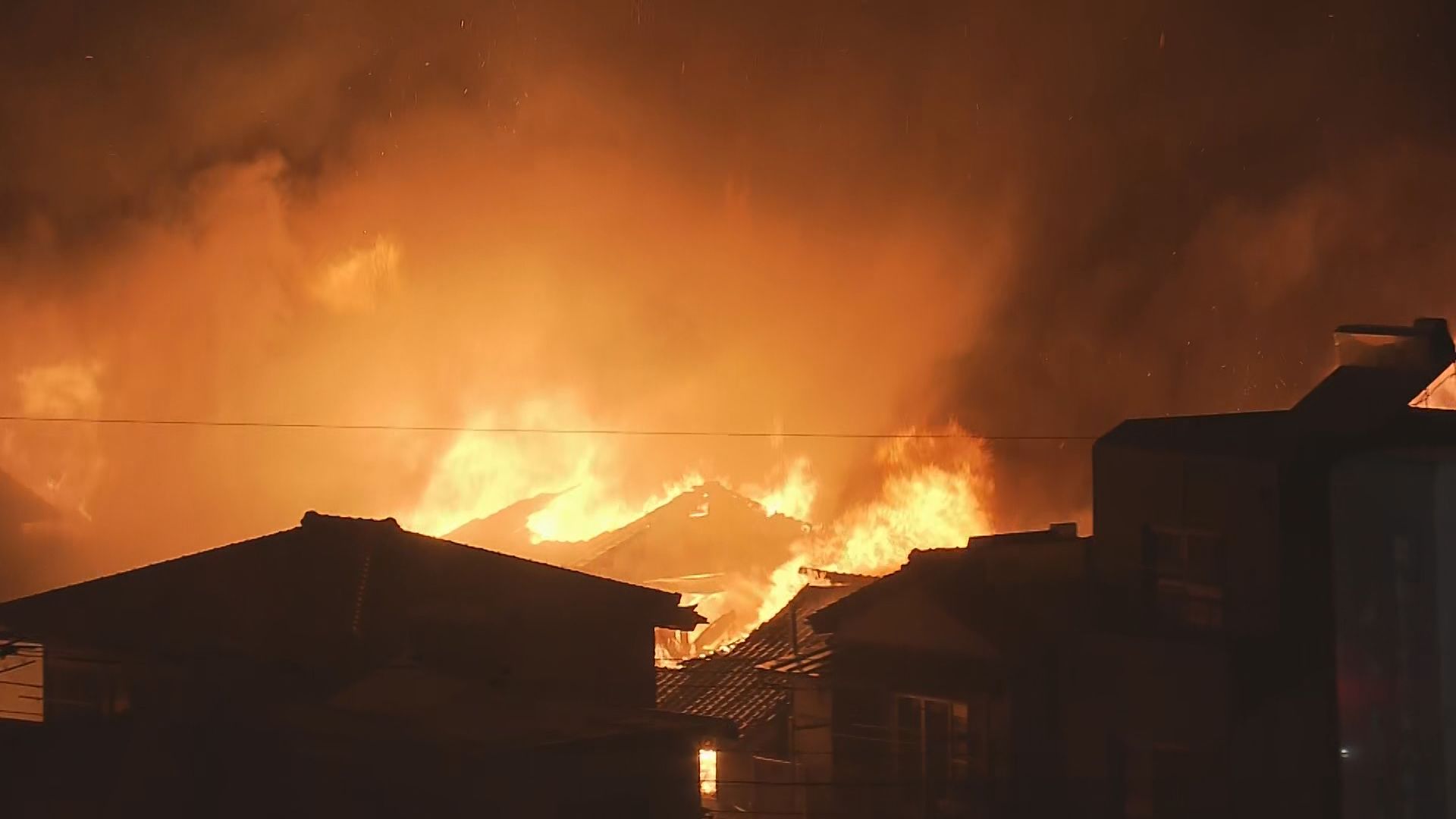 火は複数の建物に延焼し大規模な火災となっていて現在、消火活動が続けられています。