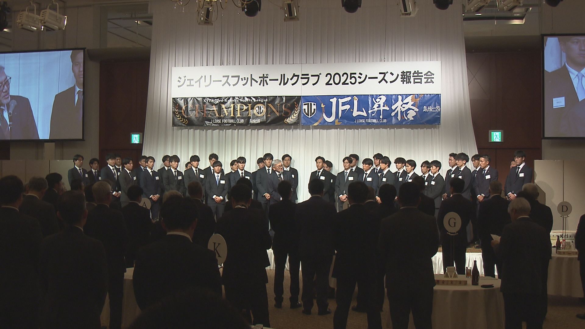 JFL昇格を決めたジェイリースFCの今シーズンの報告会が8日夜、大分県大分市で行われました。