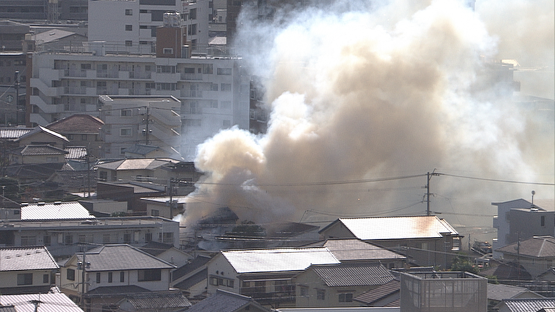 「大分市の王子中町です。あちらの住宅は煙に包まれ中からは時折炎が見えます」