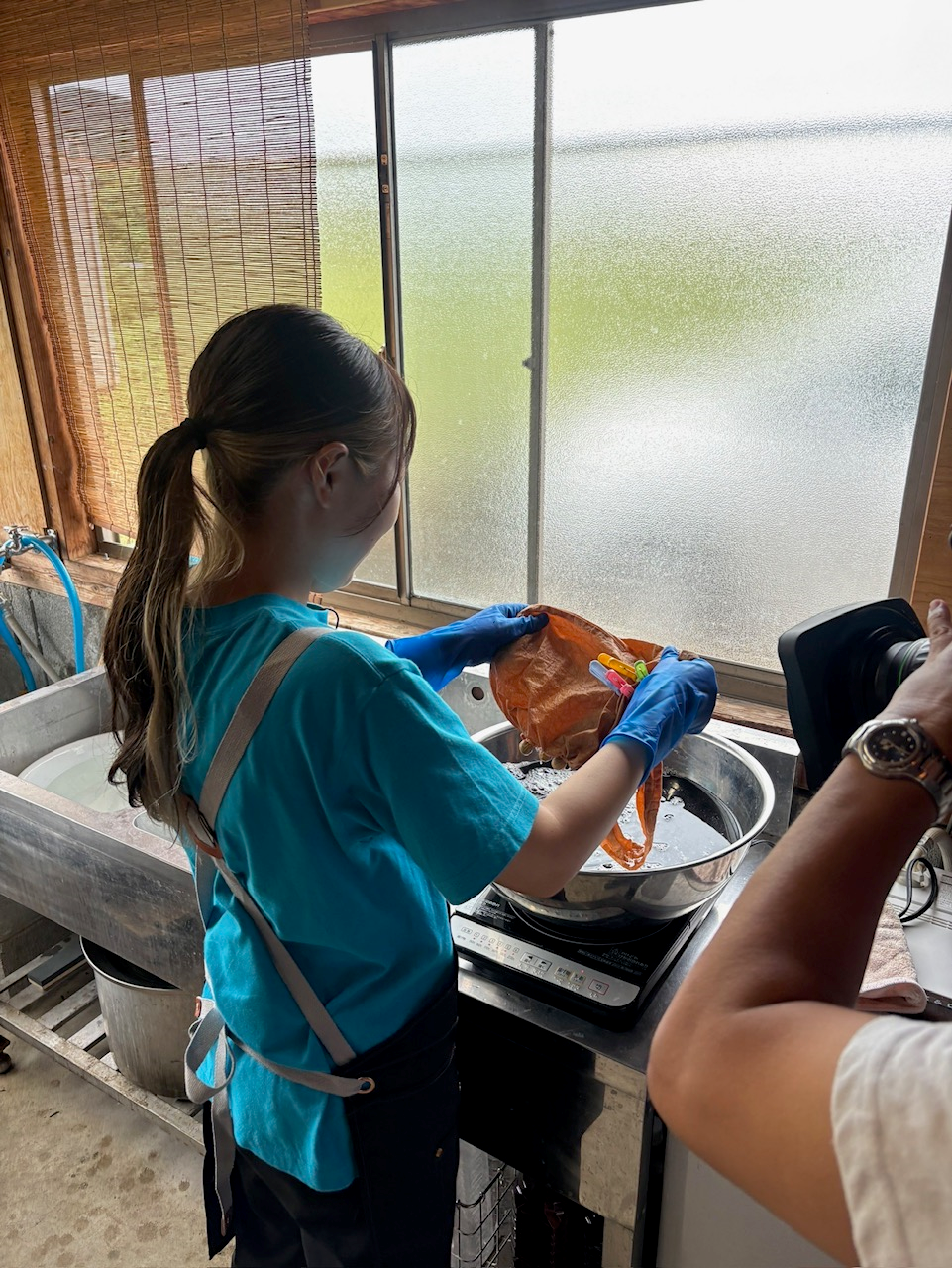 10月11日から開催される国東半島芸術文化祭2025を前に、「ののはな草木染アカデミー」で初めての植物から抽出した染料を使って衣類などを染める「草木染め」を体験をしてきました。