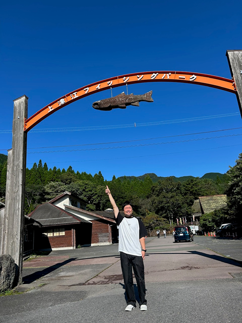 まずやって来たのは上津江フィッシングパーク。大自然の中の渓谷を活かした釣り場で渓流釣りを楽しむことができます。暑さも和らぎ、心地よい環境の中で出来る釣りは子どもも大人も楽しめること間違いなし!そして釣った魚はお隣の兵戸茶屋で塩焼きにしてすぐにいただくこともできます。この季節にぴったりのアクティビティですよ。