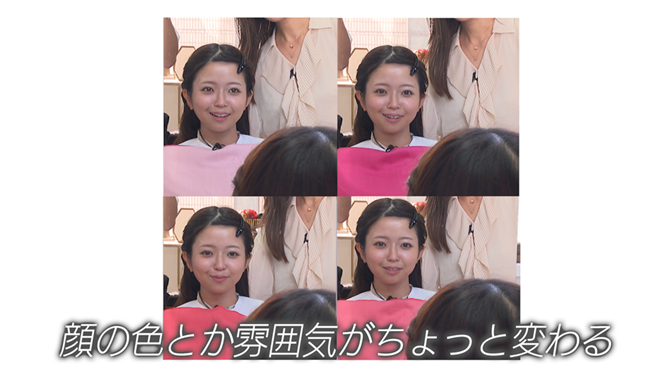 大きく分けて、肌はイエローベースとブルーベースに分かれるとのこと。様々な色の布を当てながら、顔の印象がよりよく見えるものを探していきます。