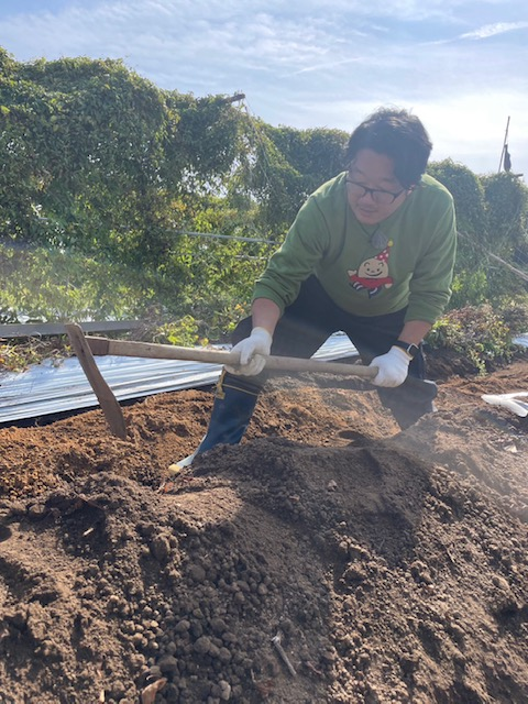 山盛りになっている土をクワで掘り起こして慎重に取り出すと、まっすぐに伸びた「ねばりごし一本」が姿を現します。