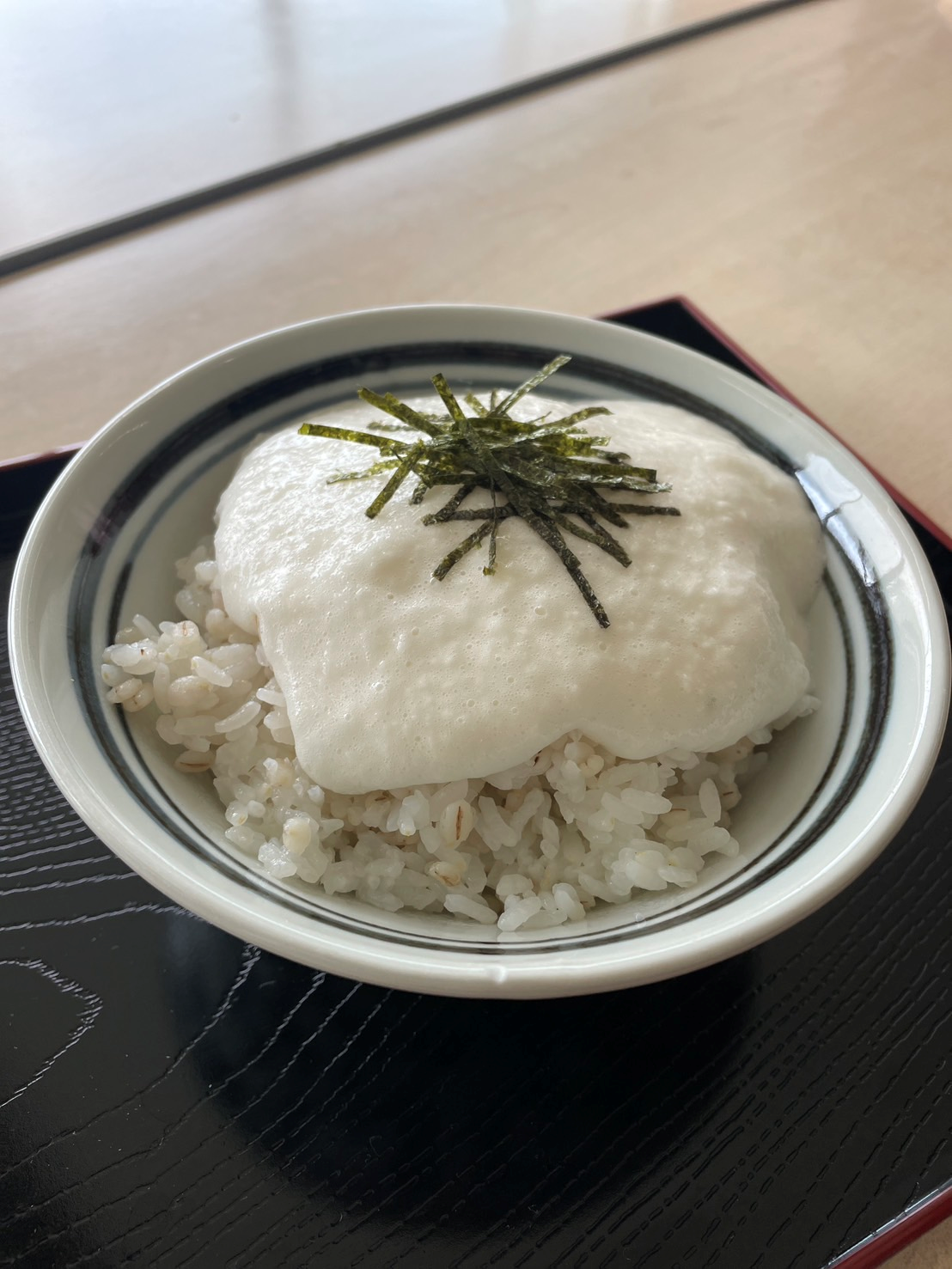 出汁を加えてのばした「とろろ」をアツアツの麦ごはんの上へ乗せていただきます!