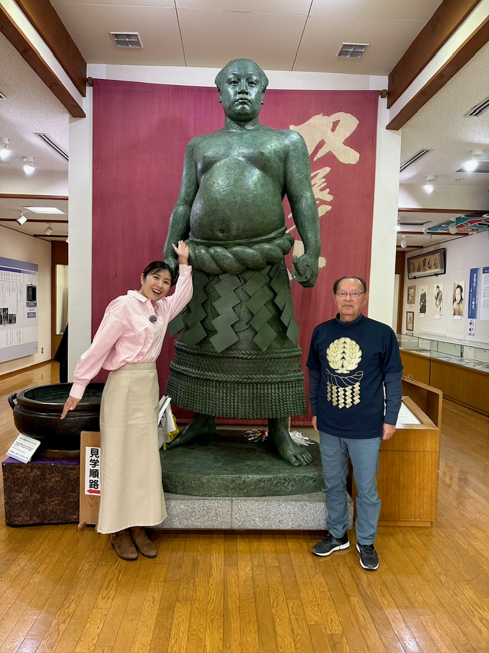 館内に入るとすぐに全長3メートルもある双葉山の銅像に会えます!その迫力は是非体感して欲しいです。その他にも双葉山が着ていた羽織のレプリカを実際に着ることが出来たり、双葉山をはじめ歴代横綱の手形に手をあてたりする事も出来ます。全員手が大きいのかと思いきや意外と小さい方もいて、あのパワーはどこから来るのだろうと驚きました。