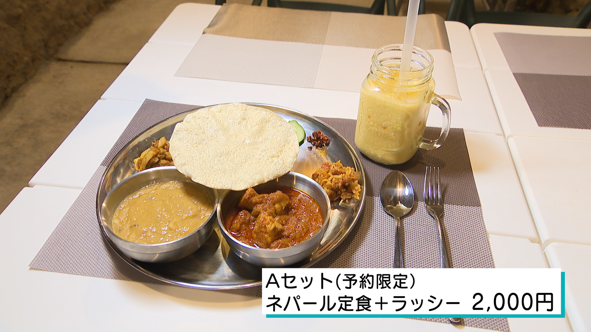 数量限定のネパール定食は、豆のスープやチキンカレーなどスパイスが効いていながら日本人の味覚に合う味付け。