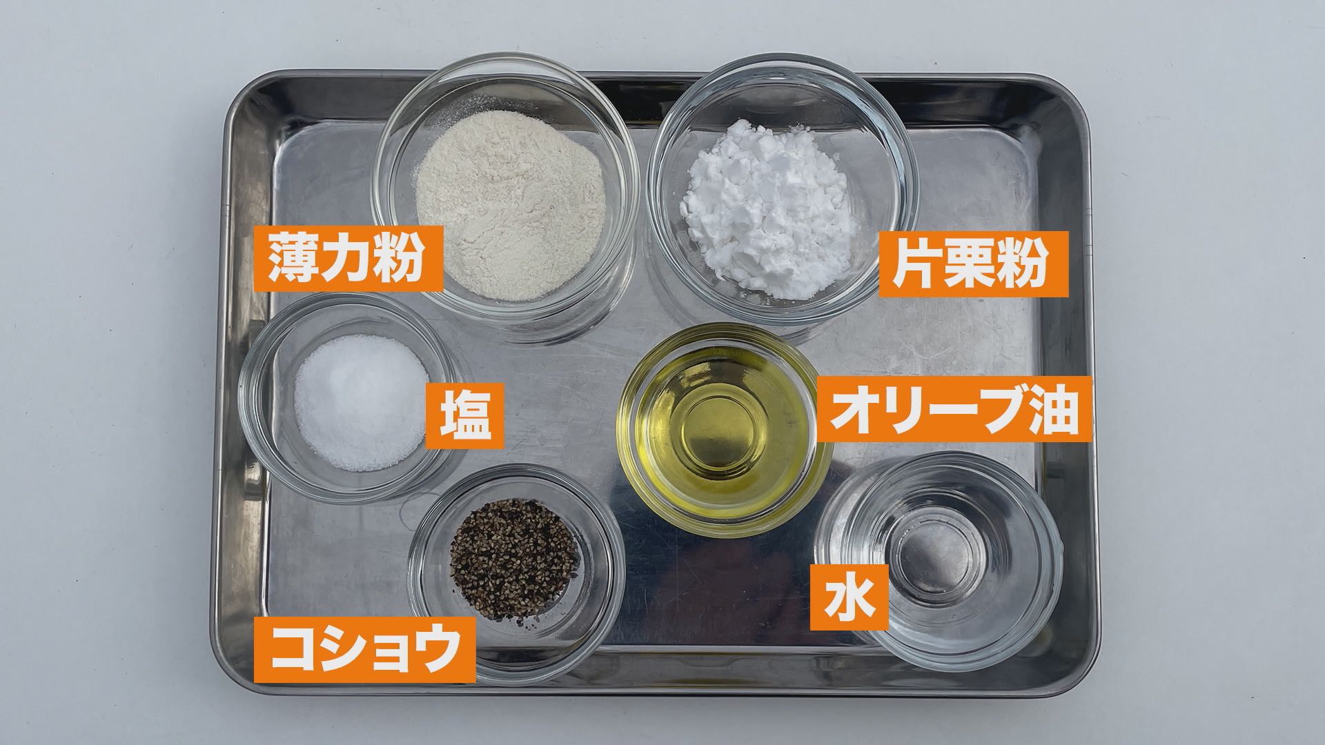◆べっぷPoint◆少量の水を入れることで粉っぽさがなくなり、生地のまとまりがよくなる!