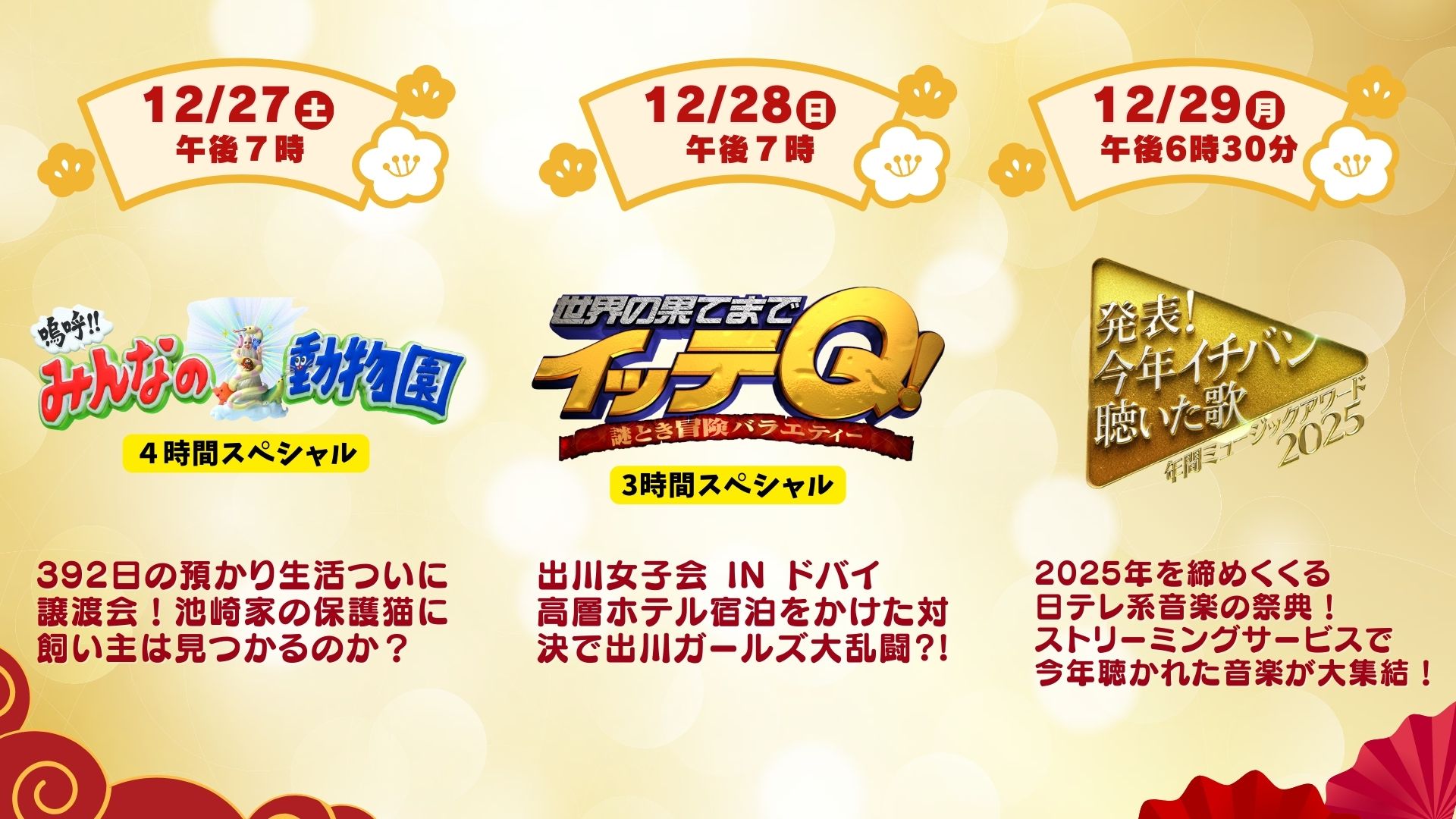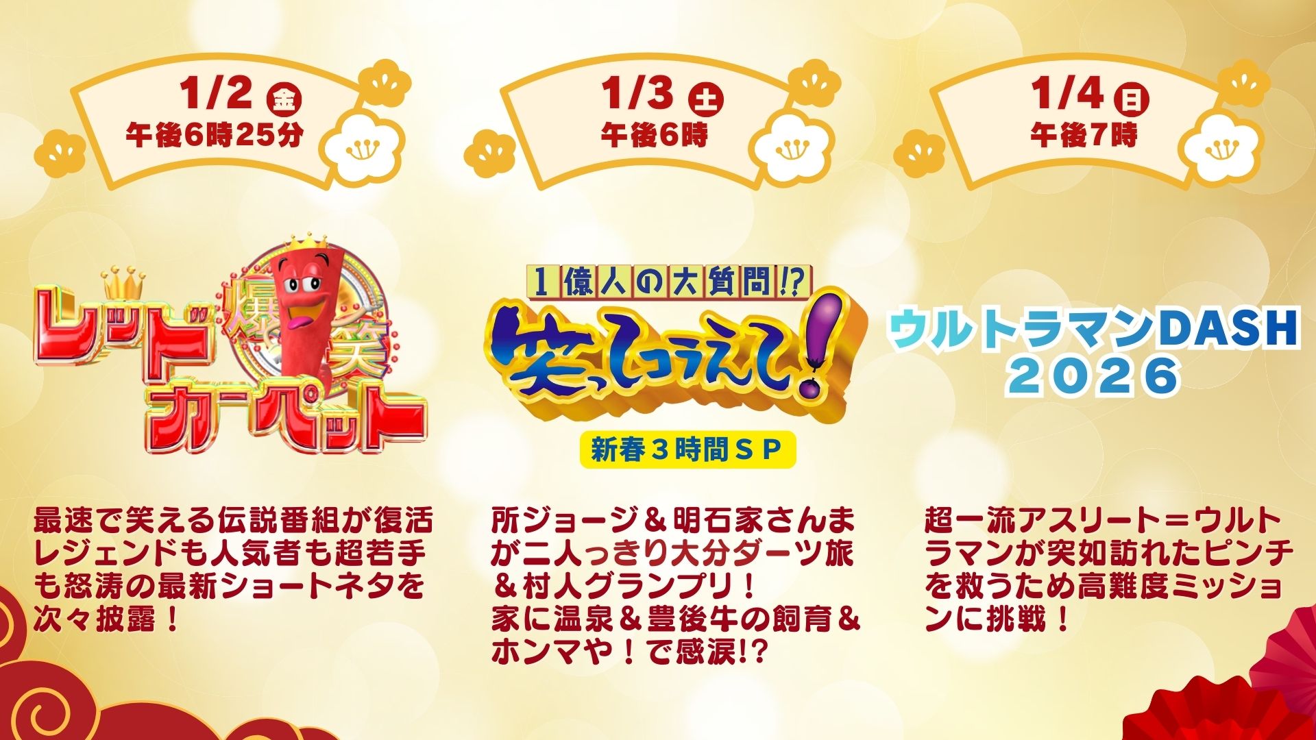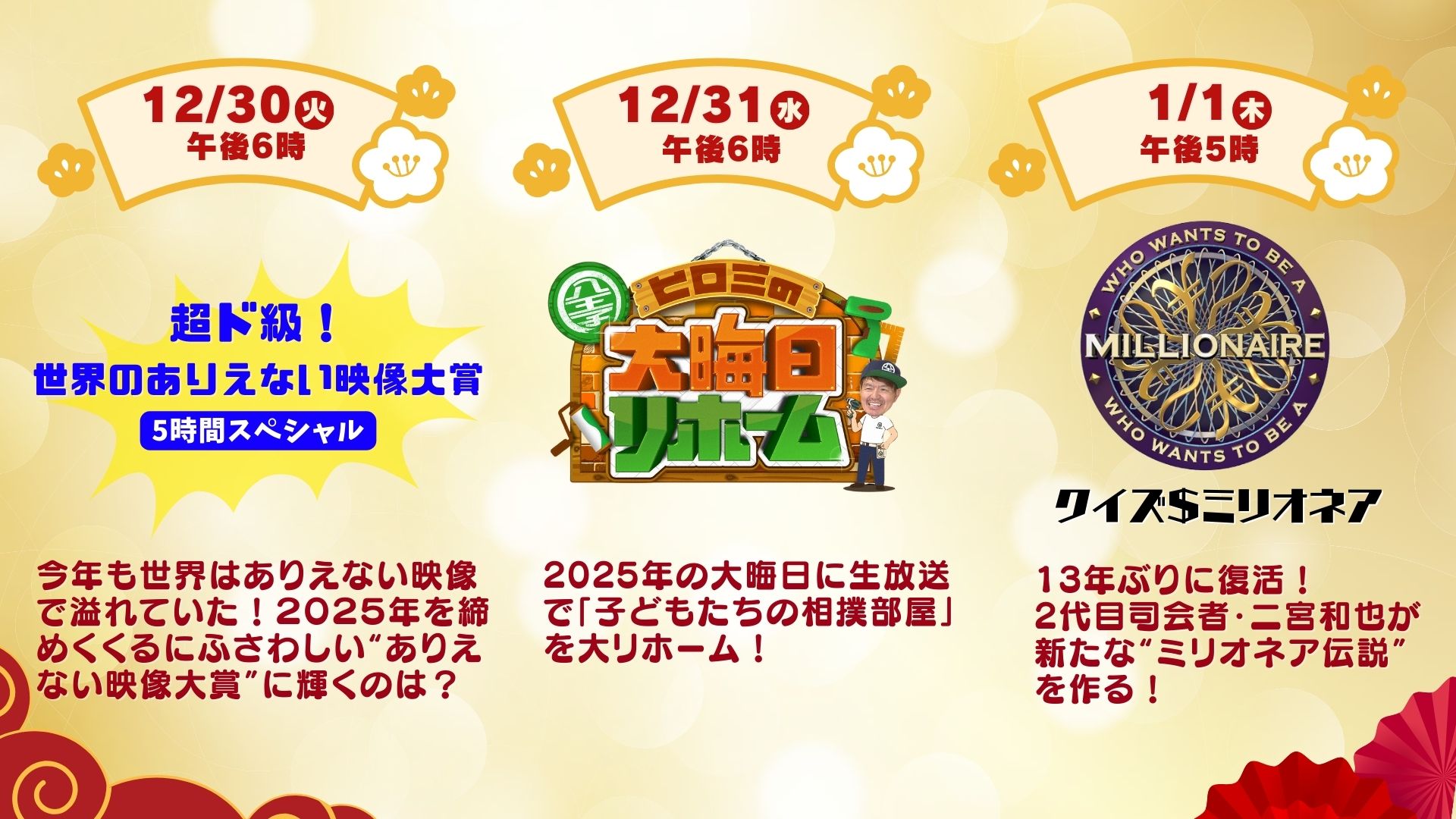 年末年始ならではの特別番組や、人気番組の復活版なども放送!